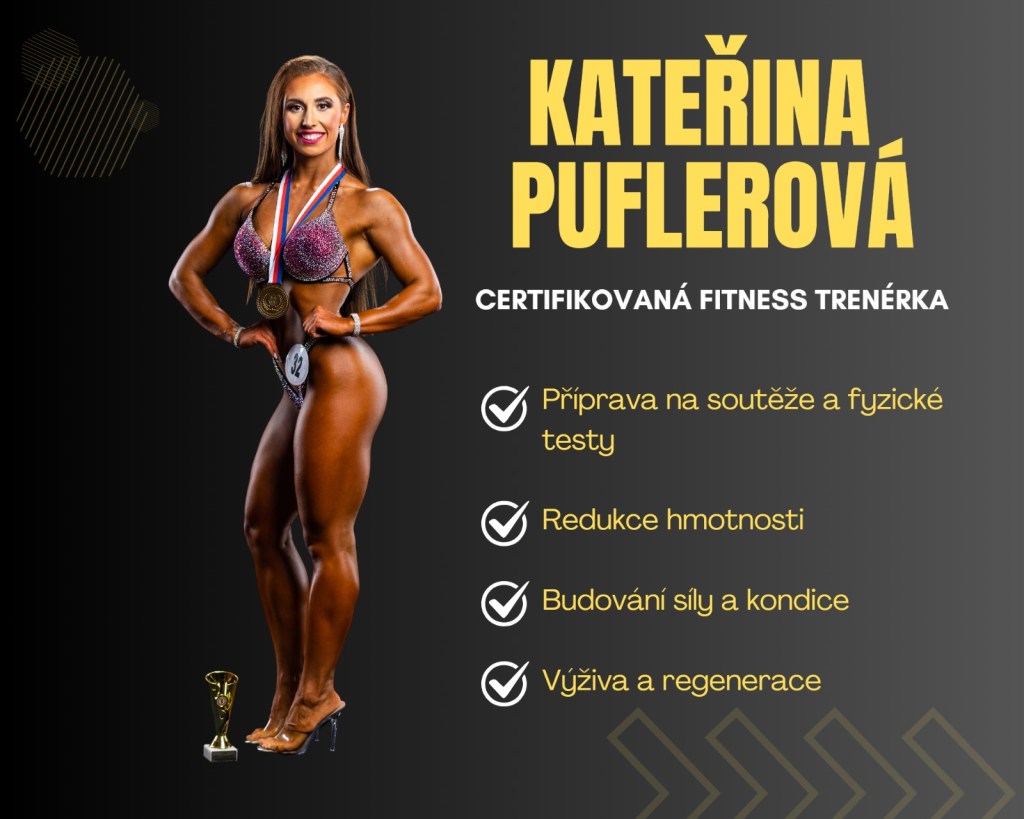 Fitness se věnuji od 2. stupně základní školy. Za tu dobu jsem získala mnoho bohatých zkušeností a znalostí v silovém a kondičním tréninku, výživě i regeneraci. Tyto znalosti stále prohlubuji novými studiemi, kurzy a semináři, a také zkušenostmi jiných trenérů. Účastnila jsem se mnoho výkonnostních i estetických soutěží a více o nich můžete vidět na mém profilu: KATIE COACH